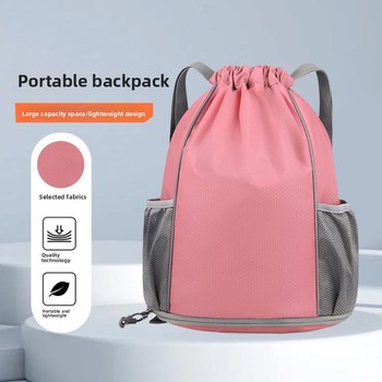 Mochila Portátil Unisex de Gran Capacidad, Bolsa de Almacenamiento con Cordón, Impermeable, Poliéster, Logotipo Impreso Personalizado para Pelota Escolar